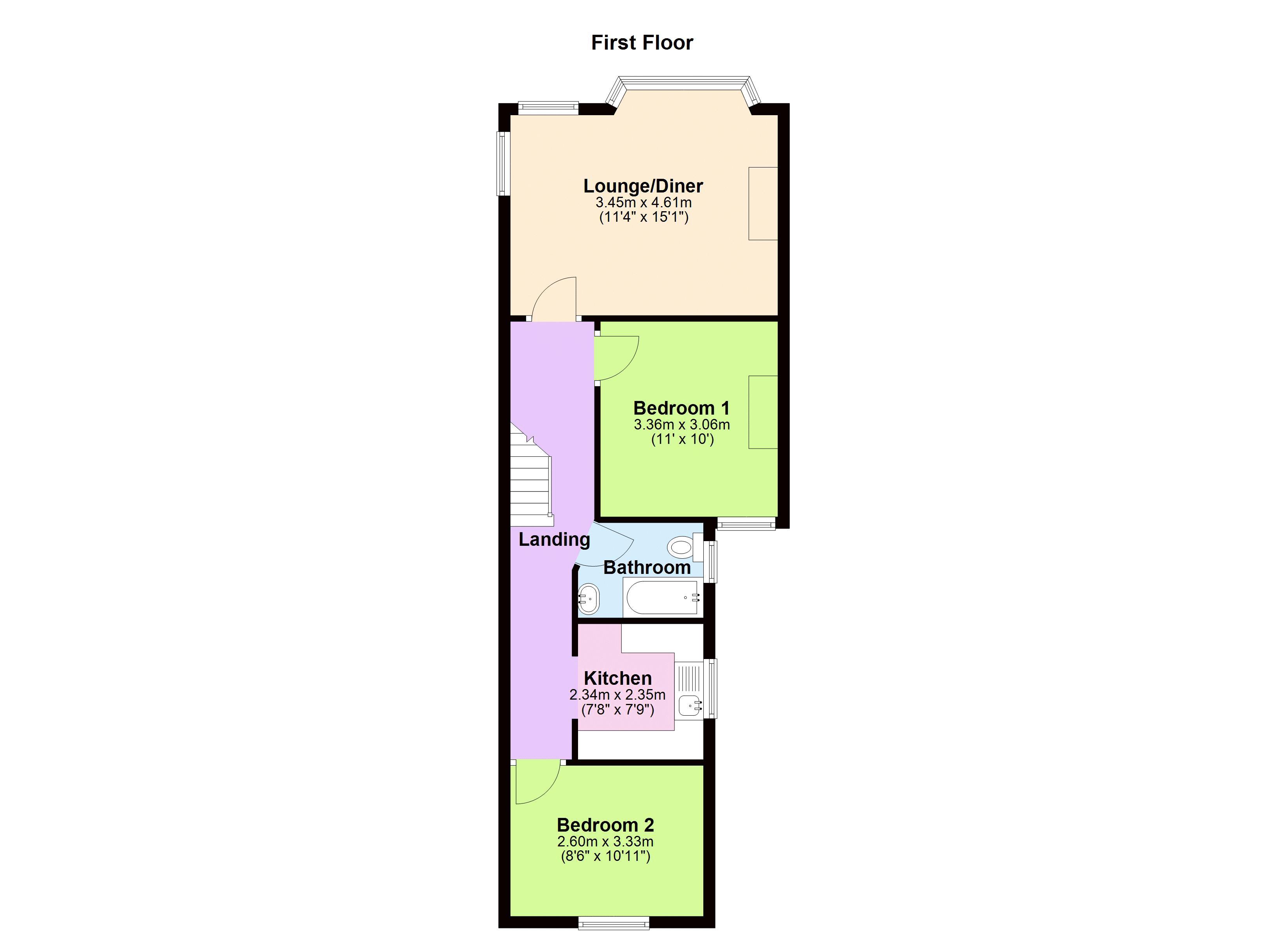 Double glazed bay window to front, double glazed windows to front and side, radiator and carpet.