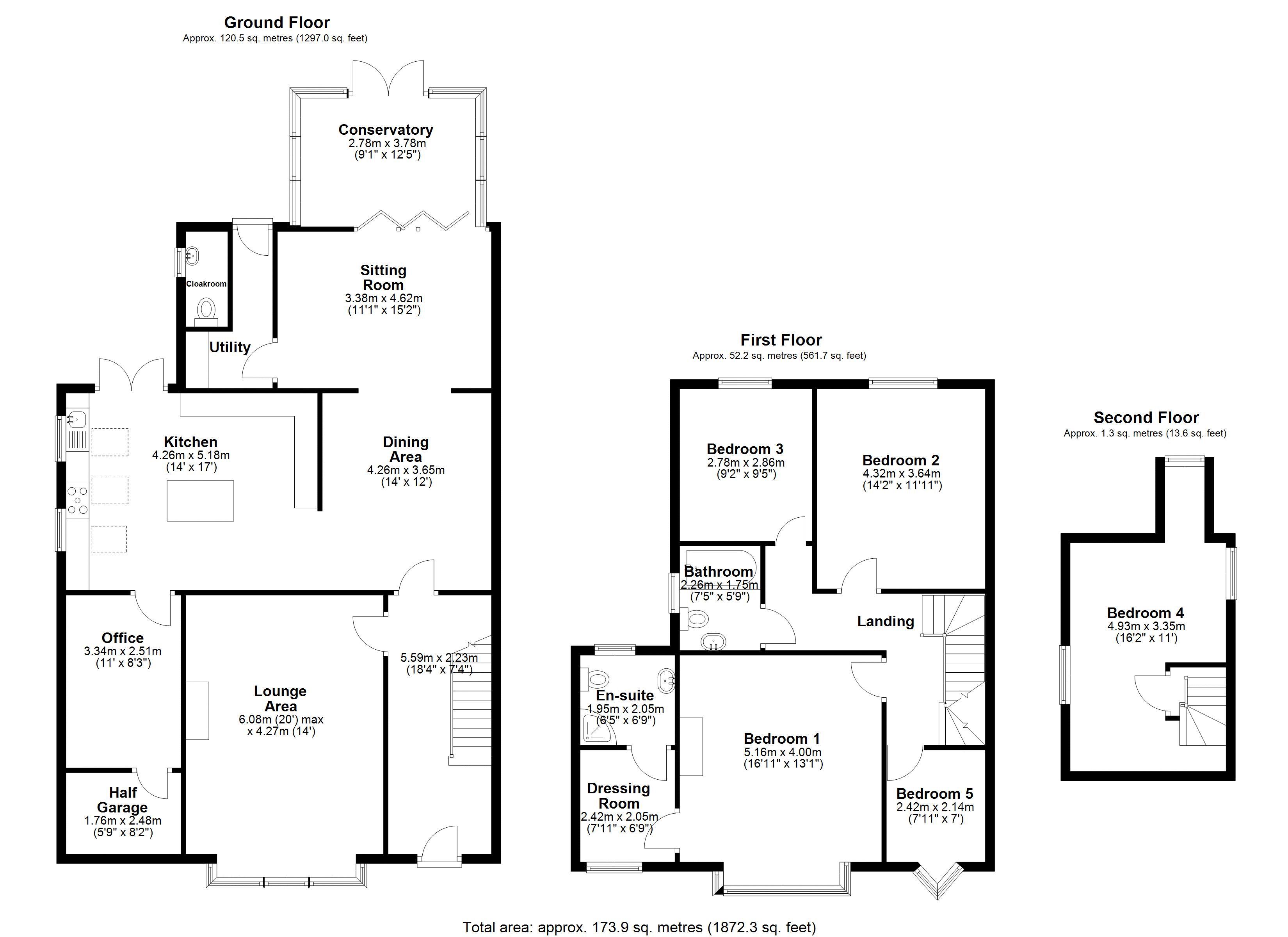Connected to the kitchen is a handy home office with built-in storage, ideal for remote work or study. There’s also a utility room, ground floor cloakroom, and a half garage offering useful storage options. To the rear, a conservatory overlooking the garden, low maintenance and an inviting spot for morning coffee, evening relaxation, or summer barbecues.